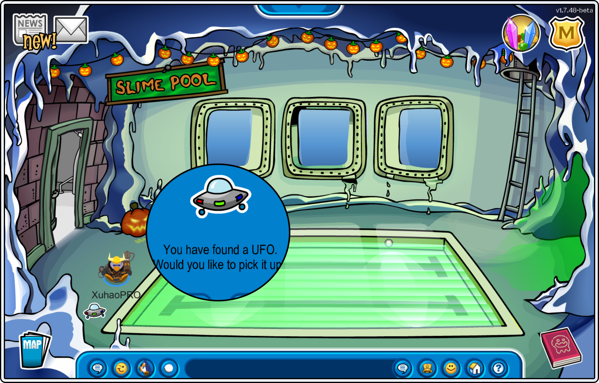 Acaba de llegar Halloween a la isla de Club Penguin Rewritten, cuya guía llegará en los próximos minutos, en esta entrada nos vamos a centrar en el nuevo pin, PIN OVNI, que estará disponible durante semanas, este nuevo pin ovni, es uno de los pins que más me ha gustado, siempre me gusto cosas que aún nos quedan por descubrir, el mundo es muy grande, el universo es inmenso, ¿por qué seríamos los especiales que existen en el mundo?.